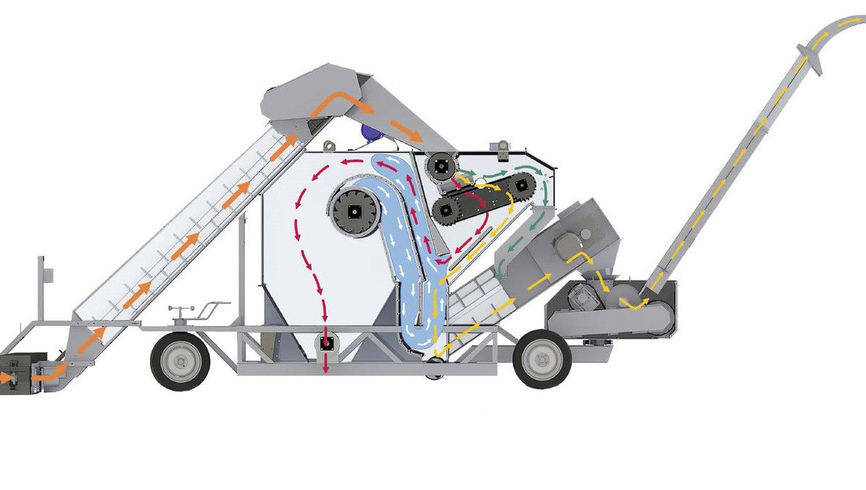 Зернокомплекс ALFA-MGC способен самостоятельно выполнять множество функций: с помощью загрузочного транспортера он сам загружает поступивший с поля зерновой ворох колосовых, крупяных, зернобобовых культур, кукурузы, сорго и подсолнечника в приемный отсек, очищает и выгружает уже очищенное от сорных примесей зерно в автотранспорт.
